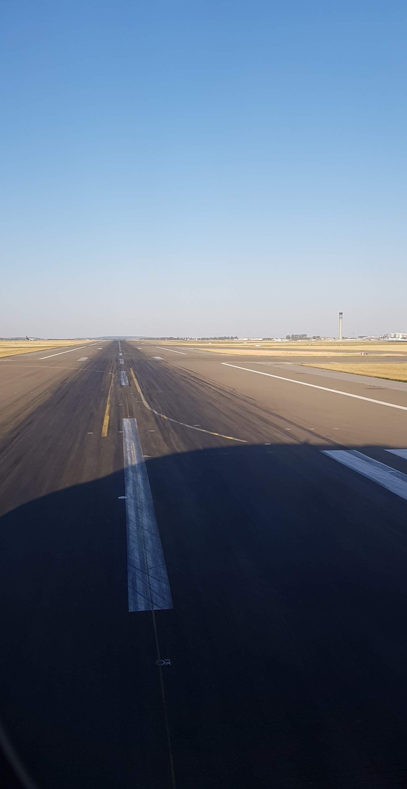 Terminal 4. Enregistrement, contrôle. Le genou a tenu jusqu'au bout. Je suis fière de lui.
