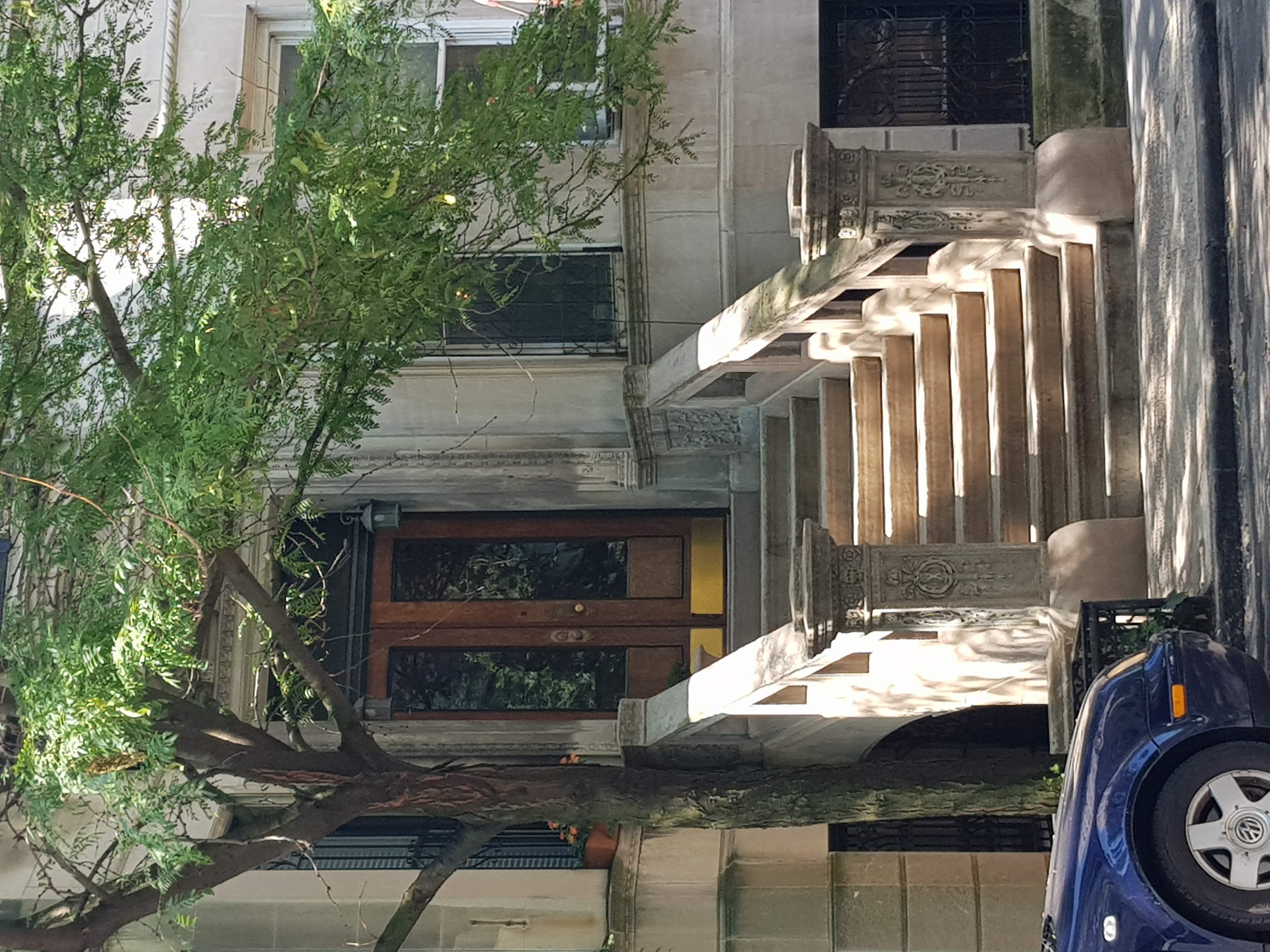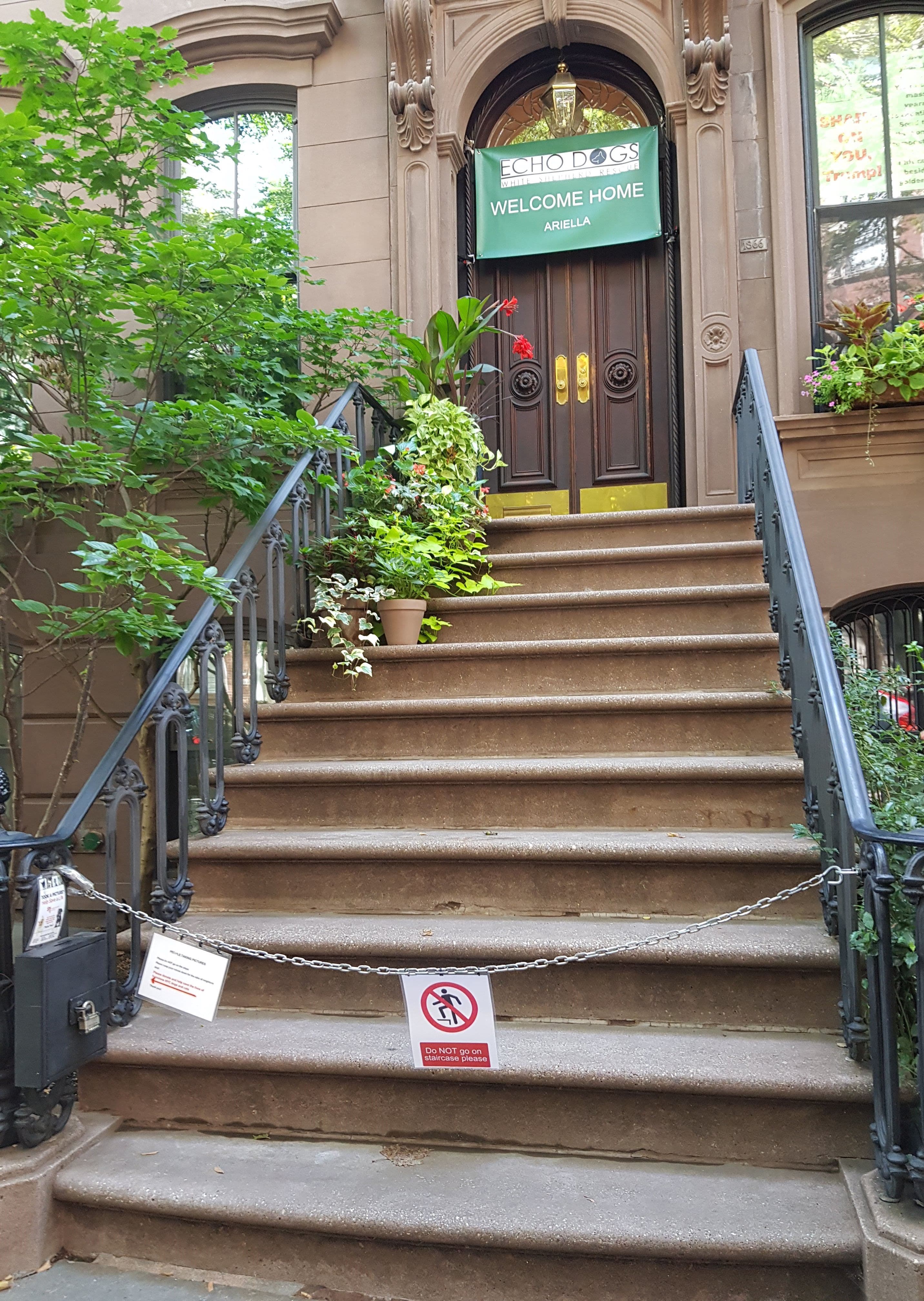 L'immeuble de Carrie Bradshaw. Sex and the City c'est une de mes séries préférées — quatre filles qui embrassent des crapauds avant de trouver leur prince. Je l'ai regardée le cœur léger. Et là j'étais face à la réalité. L'escalier était plus petit que prévu. Mais c'était vrai. C'était réel.